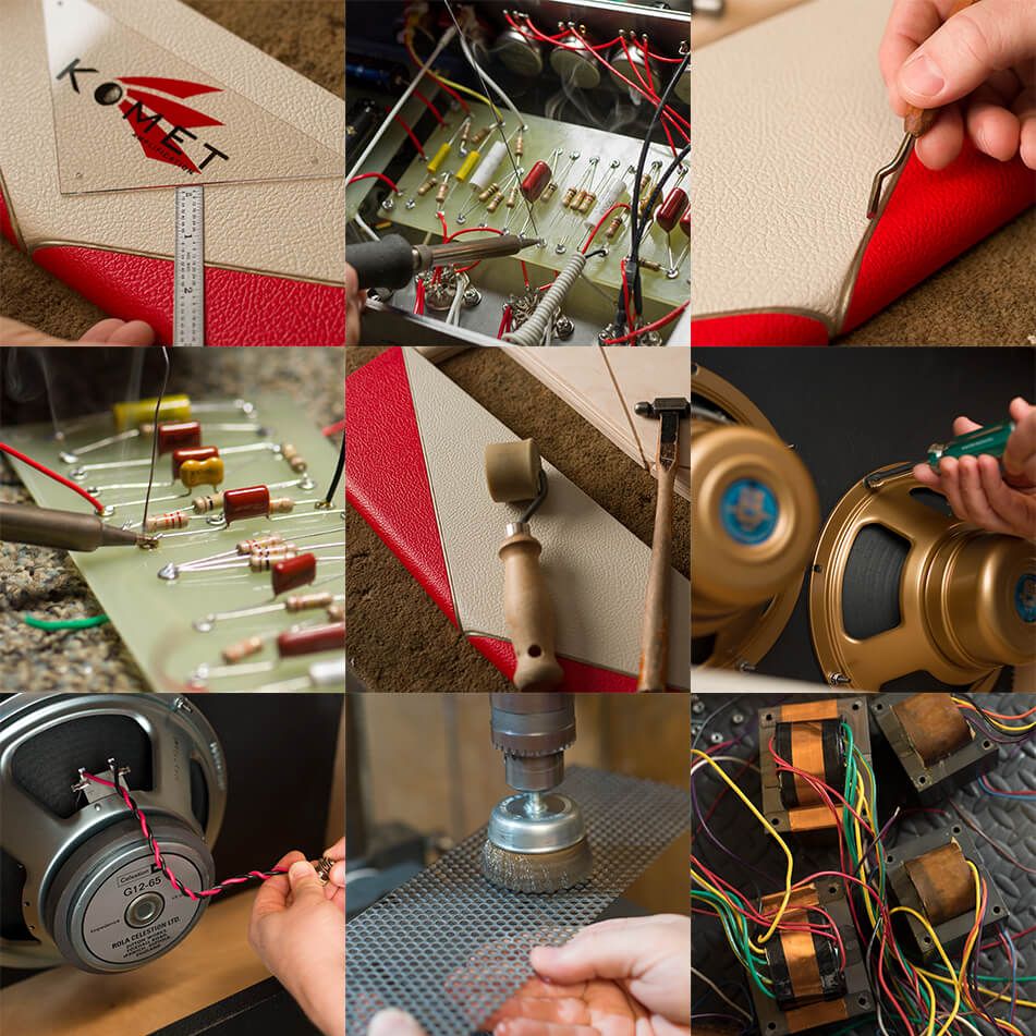 Each Komet® amplifier is meticulously hand built in Baton Rouge, Louisiana, U.S.A. The greatest attention to detail is given to each product before it leaves our shop. Our transformers are of a custom proprietary design and are 100% built in California. Our chassis are laser cut, welded aluminum and are 100% manufactured here in Louisiana. Each amplifier is hand wired with silver tinned Teflon wire on a glass-epoxy circuit board. We assemble all of our amplifiers with stainless steel screws and bolts. Our control panels are 100% made here in the U.S.A. and are of the absolute highest in quality. We use only the best in quality of capacitors and switches. These are just a few of the details you will find in every single Komet amplifier.