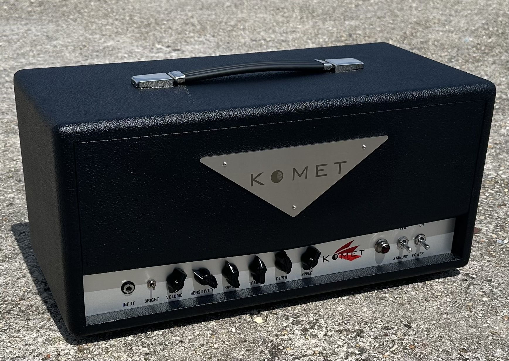 Fresh off the assembly line, 2026 Pulse Jet in all black tolex with our custom laser etched, stainless steel logo. $4999 shipped in continental U.S. - Ground shipping from Komet in a heavy duty, foam injected box. We can pro rate the shipping cost for outside U.S. inquiries. Please e-mail: kometamp@gmail.com for purchasing details or if you need any additional info.