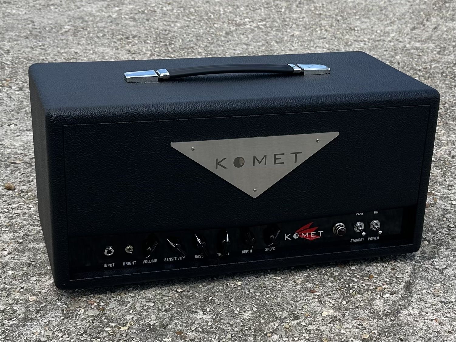 Fresh off the assembly line, brand new - 2026 Pulse Jet in all black tolex with our custom laser etched, stainless steel logo. $4999 shipped in continental U.S. - Ground shipping from Komet in a heavy duty, foam injected box. We can pro rate the shipping cost for outside U.S. inquiries. Please e-mail: kometamp@gmail.com for purchasing details or if you need any additional info. Tremolo footswitch included.