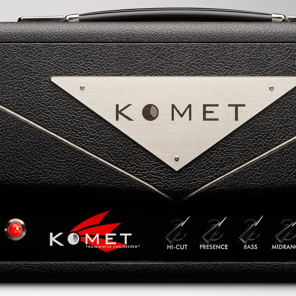 Komet™ amplifiers are hand-crafted and are available in a wide variety of cosmetics. Each model is available with its own set of customizations such as levant tolex, colored aluminum control panels, and even different Komet logo-plate options — all available from select Komet dealers around the world.