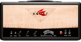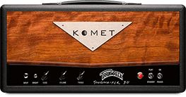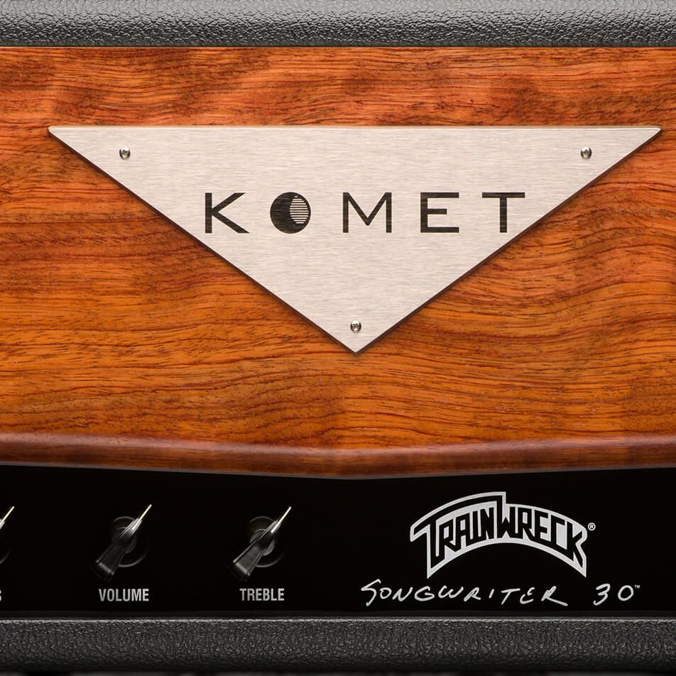 Komet™ amplifiers are hand-crafted and are available in a wide variety of cosmetics. Each model is available with its own set of customizations such as levant tolex, colored aluminum control panels, and even different Komet logo-plate options — all available from select Komet dealers around the world.