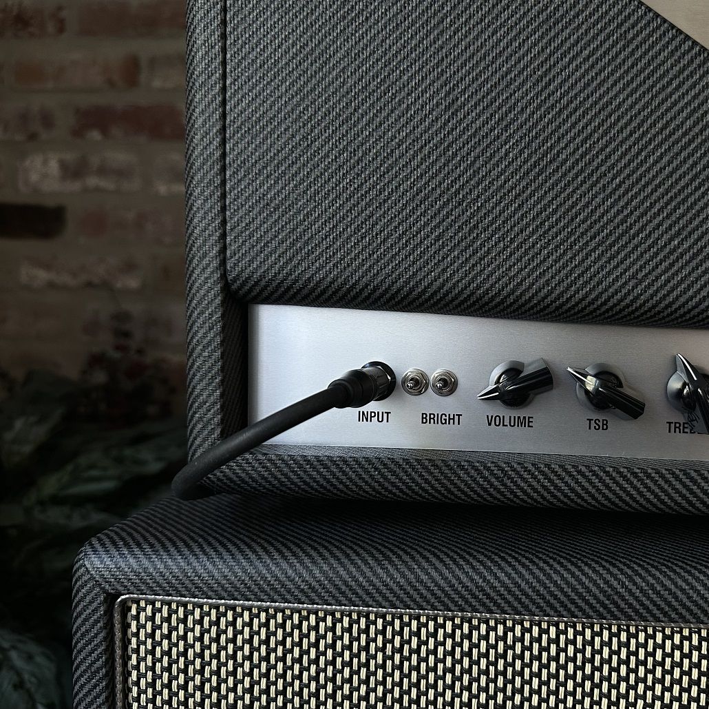 Our latest new offering based on our limited edition KT88 Silver Cloud. The V25 comprises identical controls as on our limited edition Silver Cloud and the current production Vimana model. As with this lineage - there is no global negative feedback circuit. This allows for maximum harmonic complexity and touch response. The controls include a full tone stack with: Treble, Middle and Bass controls. In addition, there is a three position Bright switch and a global Hi-Cut control. The “TSB” (Tone Stack Bypass) control allows the player to gradually bypass the tone control section of the amp; while increasing gain, mid-range and harmonic complexity.